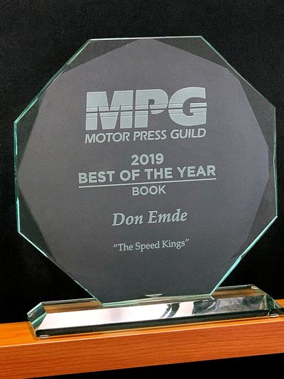 Racing, by Don Emde, was awarded the Motor Press Guild (MPG) Best Book of the Year honor